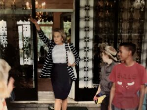 “So, the first thing we did, I wasn’t myself involved, but staff collected these animals out of the homes that had been abandoned. Most of the animals were cats and dogs. But we had a good number of parrots, birds, we had a couple of snakes — they were not poisonous. They were constrictor types. Amazing what people will collect! We had one little baby gorilla. But I think he was just on a visit. He wasn’t a permanent pet. We had a home for him right away on the other side of the river — a special place that [famed anthropologist] Jane Goodall kept.” Goodall dined at least once at Melissa’s residence and talked about her work with primates.